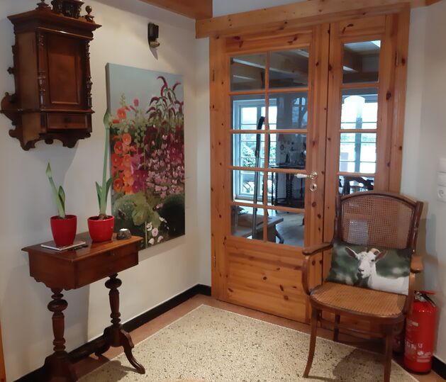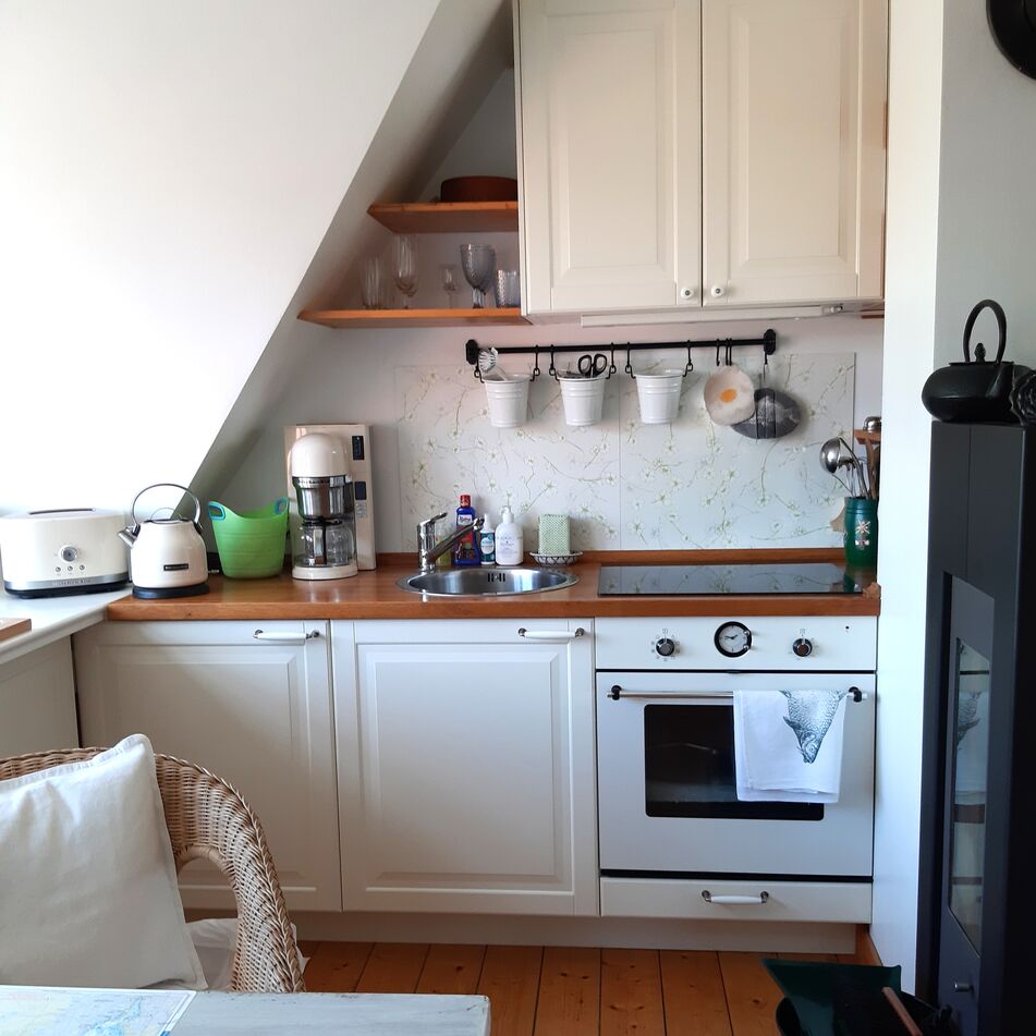 - Die FERIENWOHNUNG ist für 2 Personen, liegt im Obergeschoss mit ca. 40 qm direkt unterm Riet.