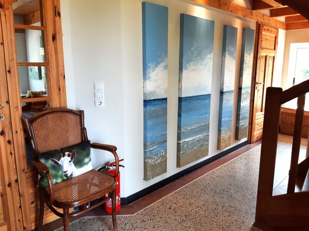 - Die FERIENWOHNUNG KÜNSTLERKATE befindet sich im Obergeschoss einer Rietdachkate. Diese liegt in einem kleine Dorf inmitten der für Angeln typischen Knicklandschaft, von Feldern umgeben nahe dem Ostseeestrand zwichen Schlei und Flensburger Förde.