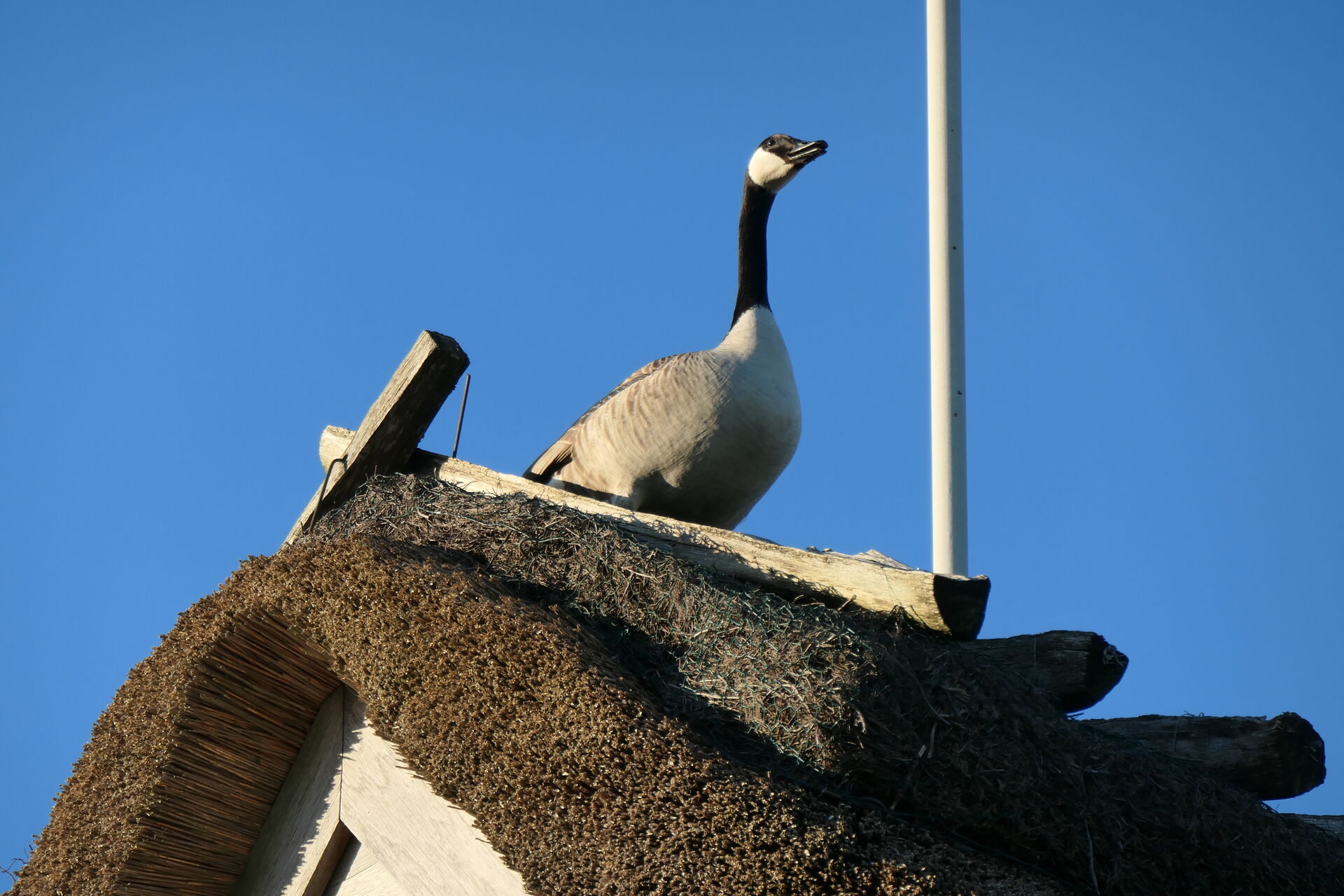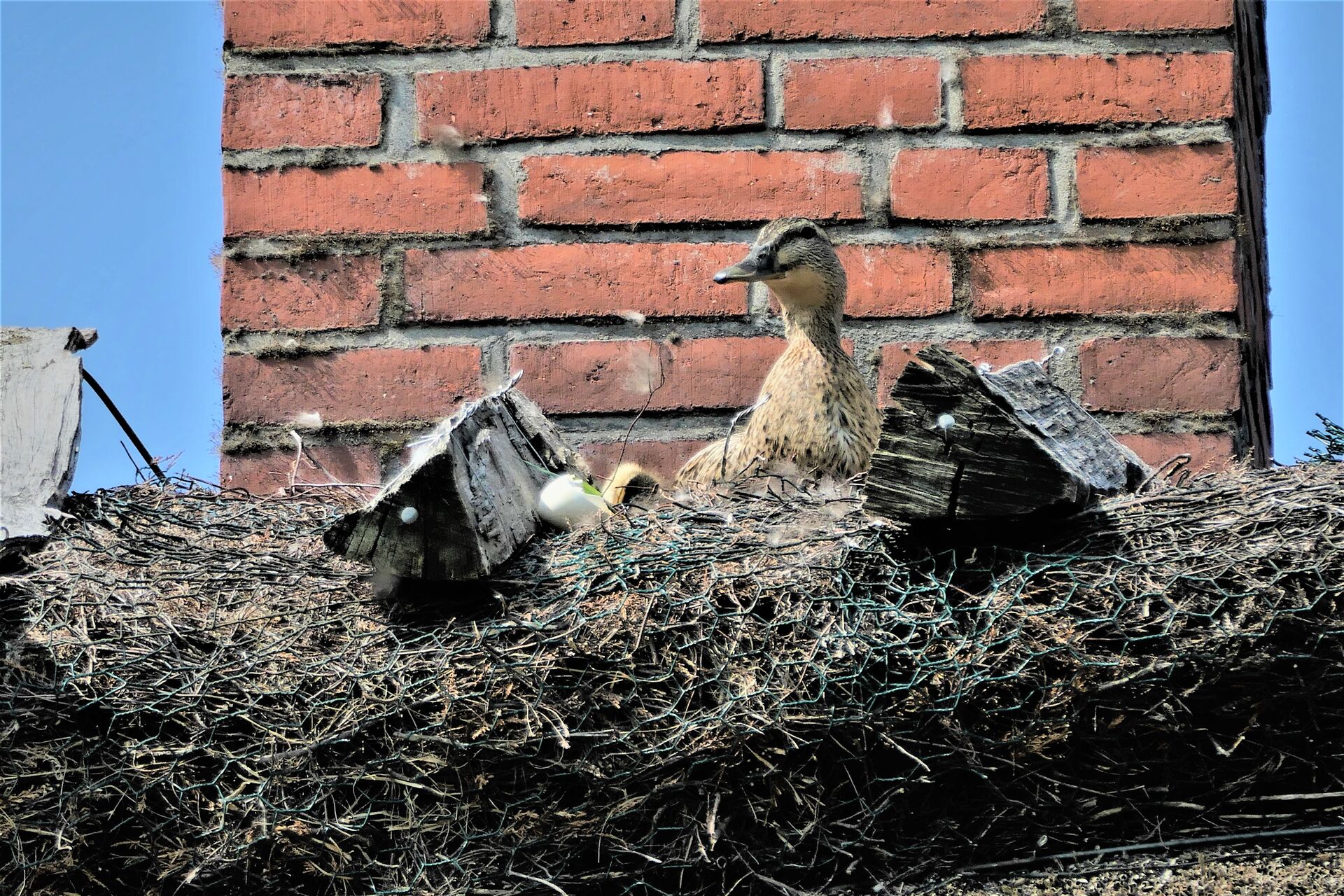 Stockenten und Graugänse lieben es an der Südseite meines Schornsteins ihr Nest zu bauen. Der Platz ist heiß begehrt und so gibt es auch unter ihnen Auseinandersetzung um das Plätzchen vor dem Schornstein. Sie legen hier im frühen Frühjahr ihre Eier und brüten diese über mehrere Wochen aus. So sitzten sie bei Wind und Wetter, Sturm und Regen, Sonnenschein und Schnee auf ihren Eiern.