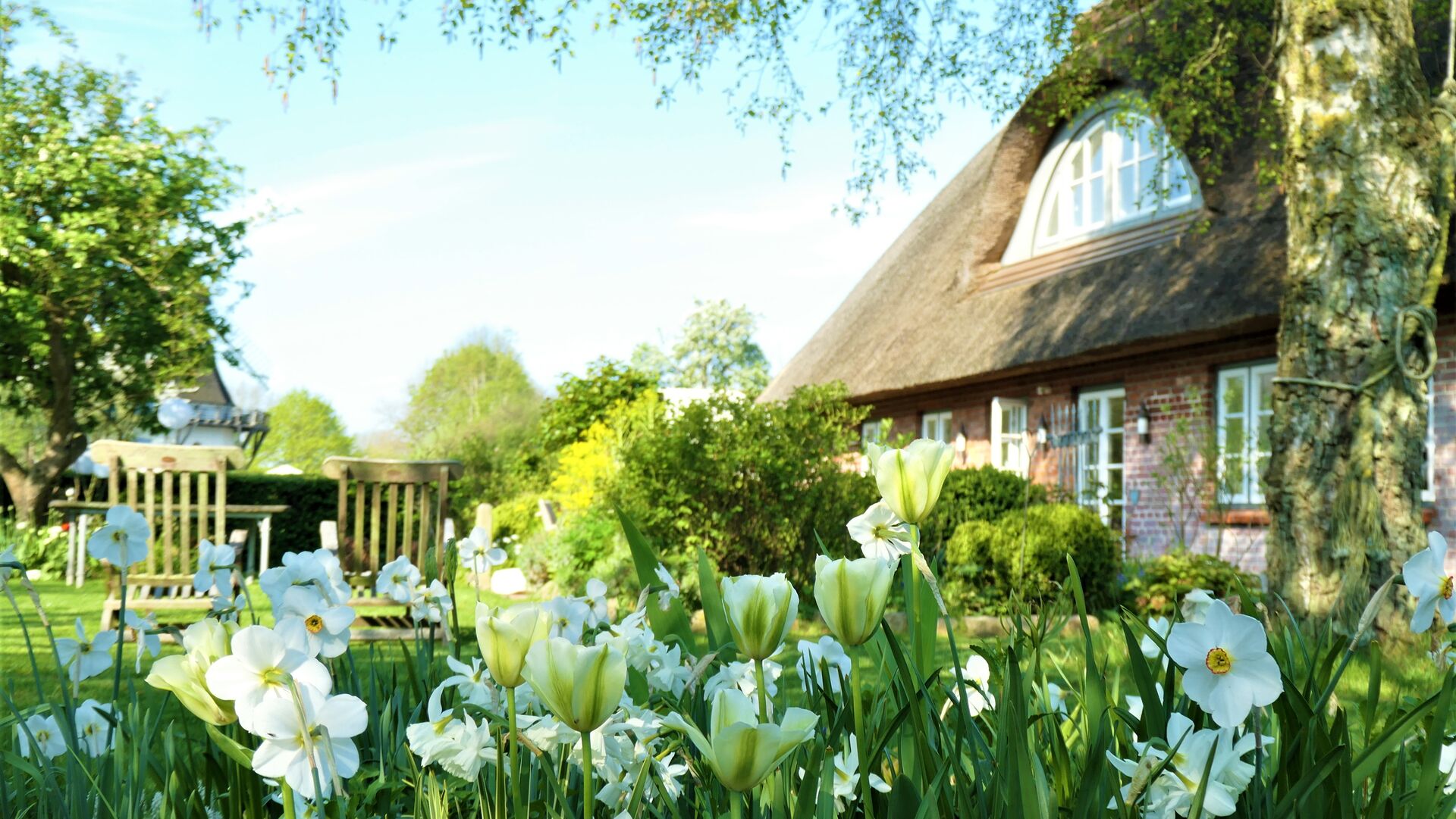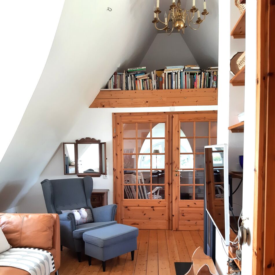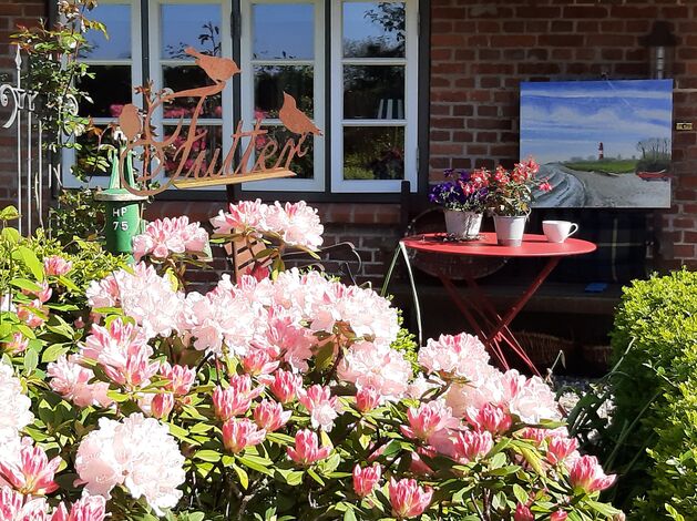 - Die KÜNSTLERKATE ist ein für die Küste typisches Haus mit einem traditionellen Rietdach. Sie ist von einer Hecke umgeben mit einem wildblühenden Blumengarten, der einläd zum Entspannen, Teetrinken, Lesen, oder einfach nur die Seele baumeln lassen, auf dem Rasen unter Apfelbäumen, im Strandkorb oder im Gartenschaukelstuhl.