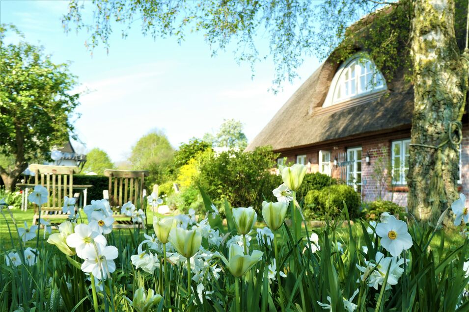 - Die KÜNSTLERKATE mit einem Nebengebäude ist ein für die Küste typisches Haus mit einem traditionellen Rietdach. Sie ist von einer Hecke umgeben mit einem wildblühenden Blumengarten, der einläd zum Entspannen, Teetrinken, Lesen, oder einfach nur die Seele baumeln lassen auf dem Rasen unter Apfelbäumen, im Strandkorb oder im Gartenschaukelstuhl.