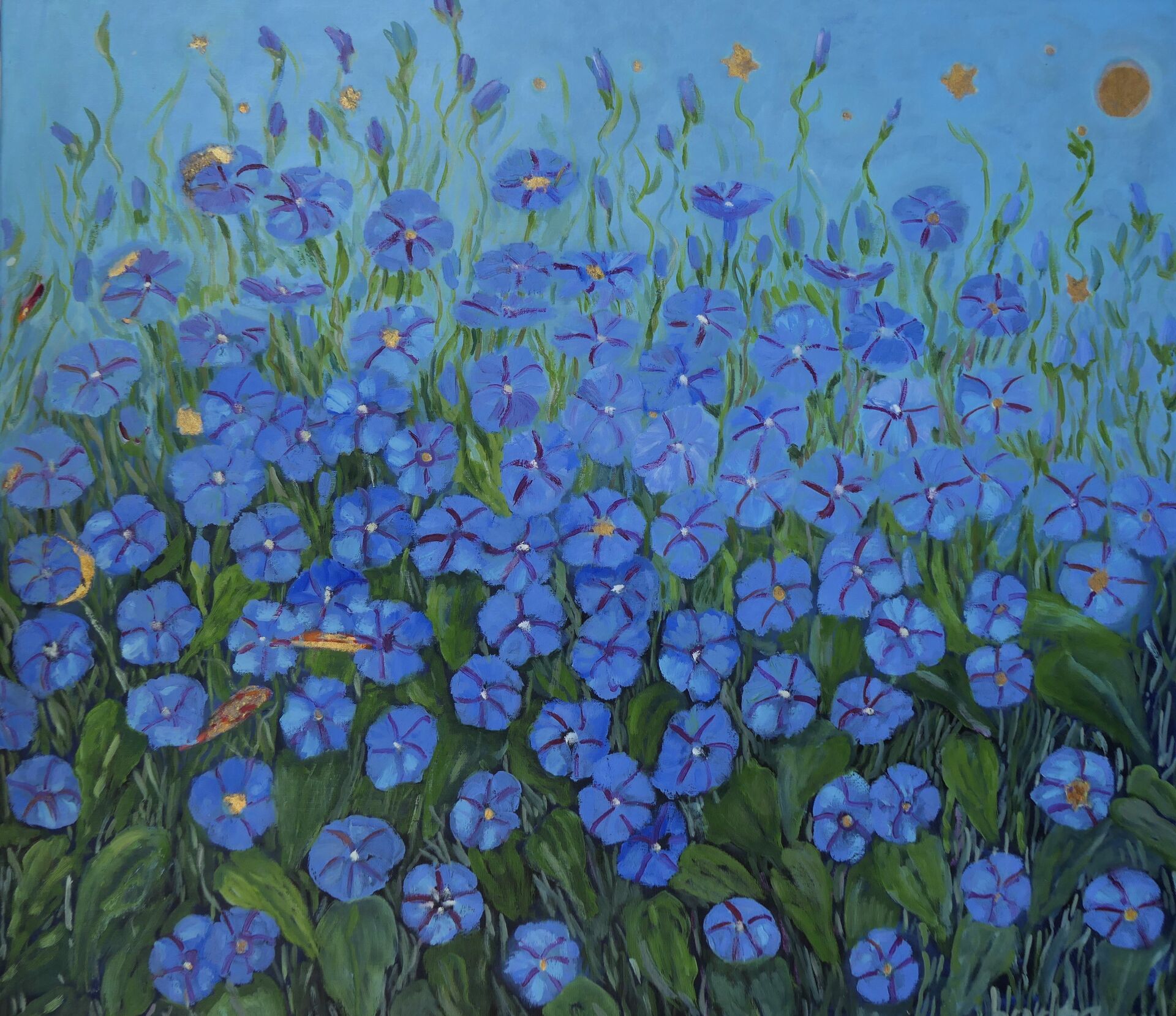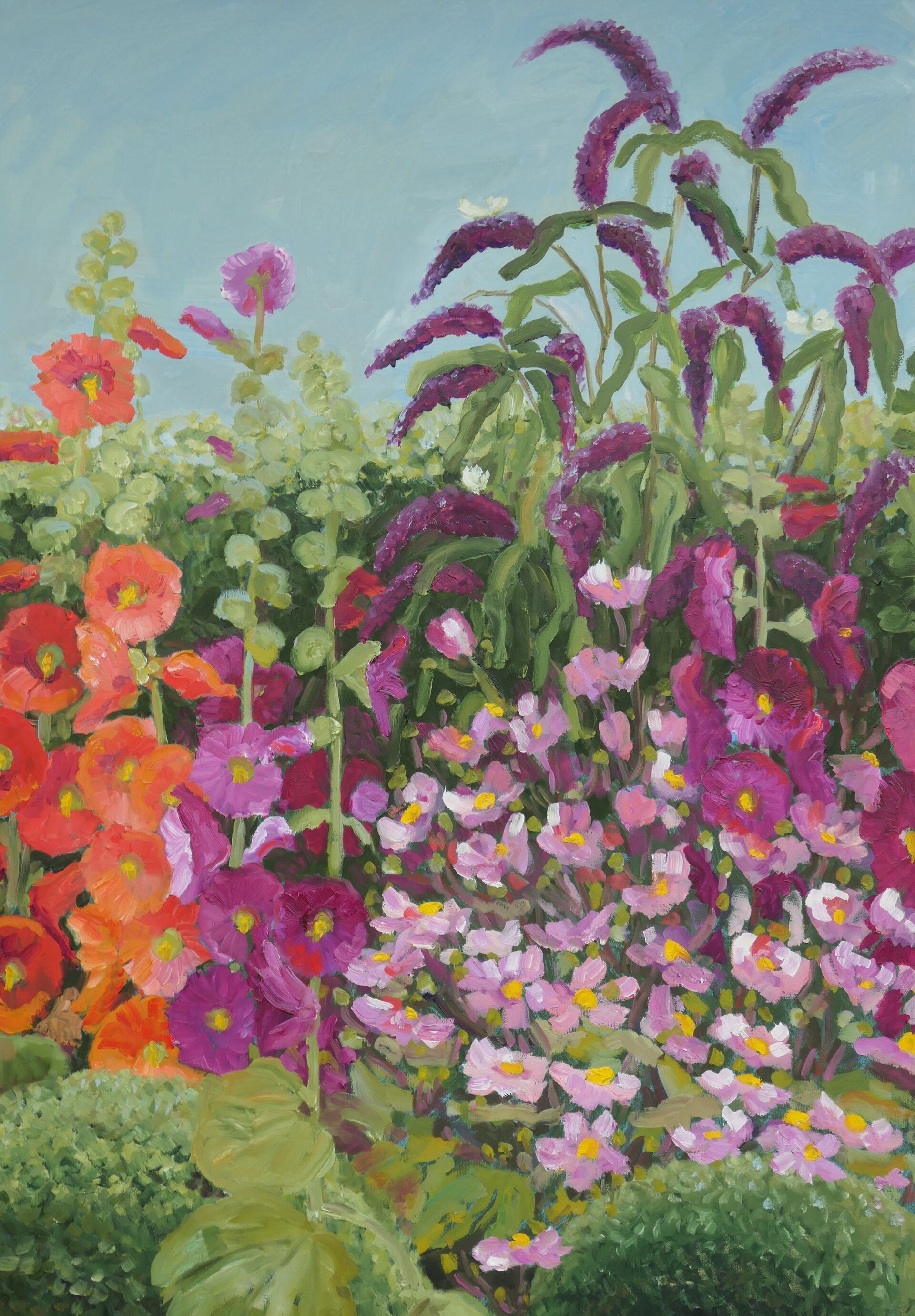 Stockrosen Öl auf Leinwand 100 cm x 100 cm
